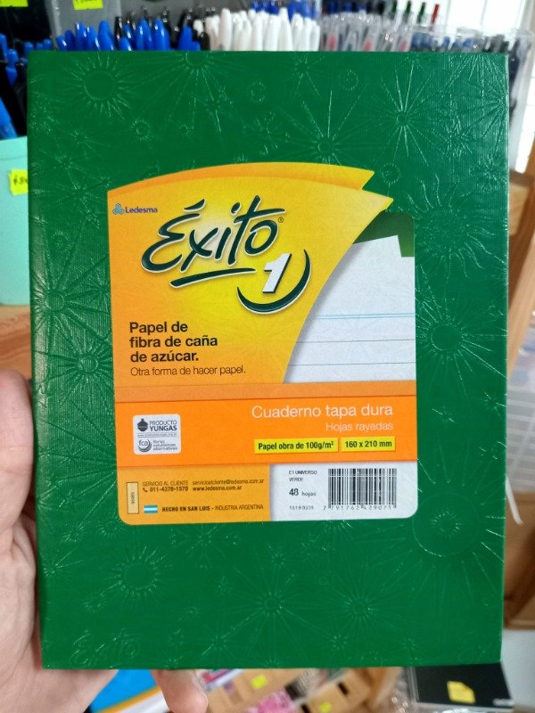 Cuaderno N 1 48 Hojas RAYADAS Tapa Dura VERDE EXITO Universo 16 x 21 cm