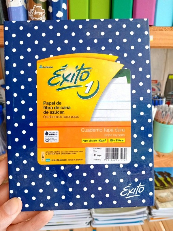 Cuaderno N 1 Tapa Dura 48 Hojas Rayadas. Lunares Azul EXITO 16 x 21 cm