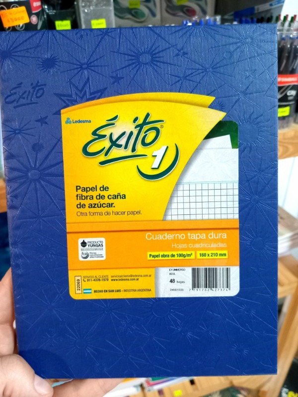 Cuaderno N 1 Tapa Dura AZUL. 48 Hojas CUADRICULADAS EXITO Universo.