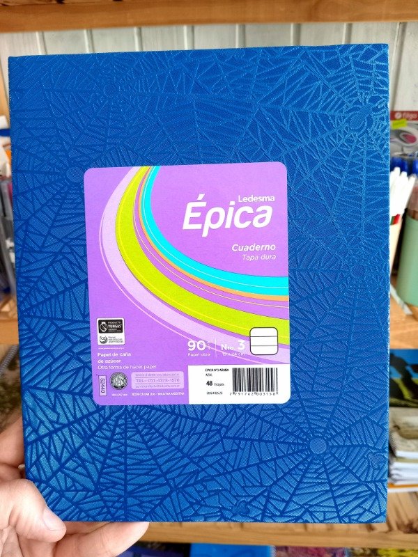 Cuaderno N 3 Tapa Dura AZUL 48 Hojas RAYADAS 90 gr. 19 x 24 cm. EPICA Ledesma