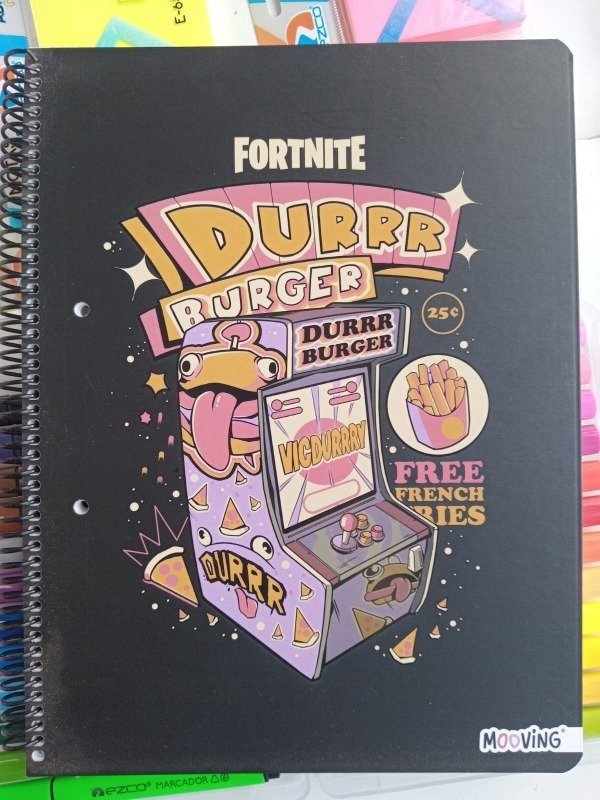 Cuaderno A4 Mooving Fornite. 80 hojas rayadas. Letras.