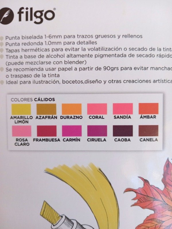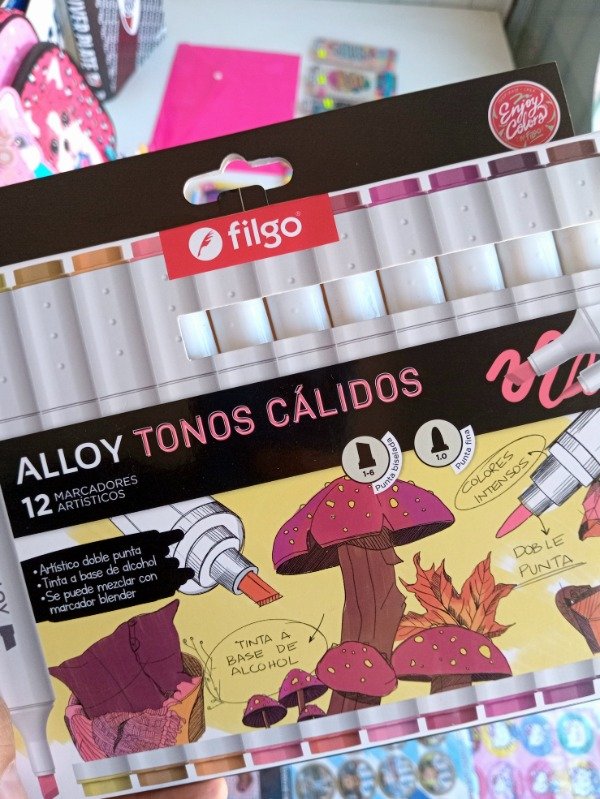 Marcadores Doble Punta Filgo Alloy Tonos CALIDOS 12 unidades. Gama de colores vivos amarillo, rosas, marrones, naranjas.